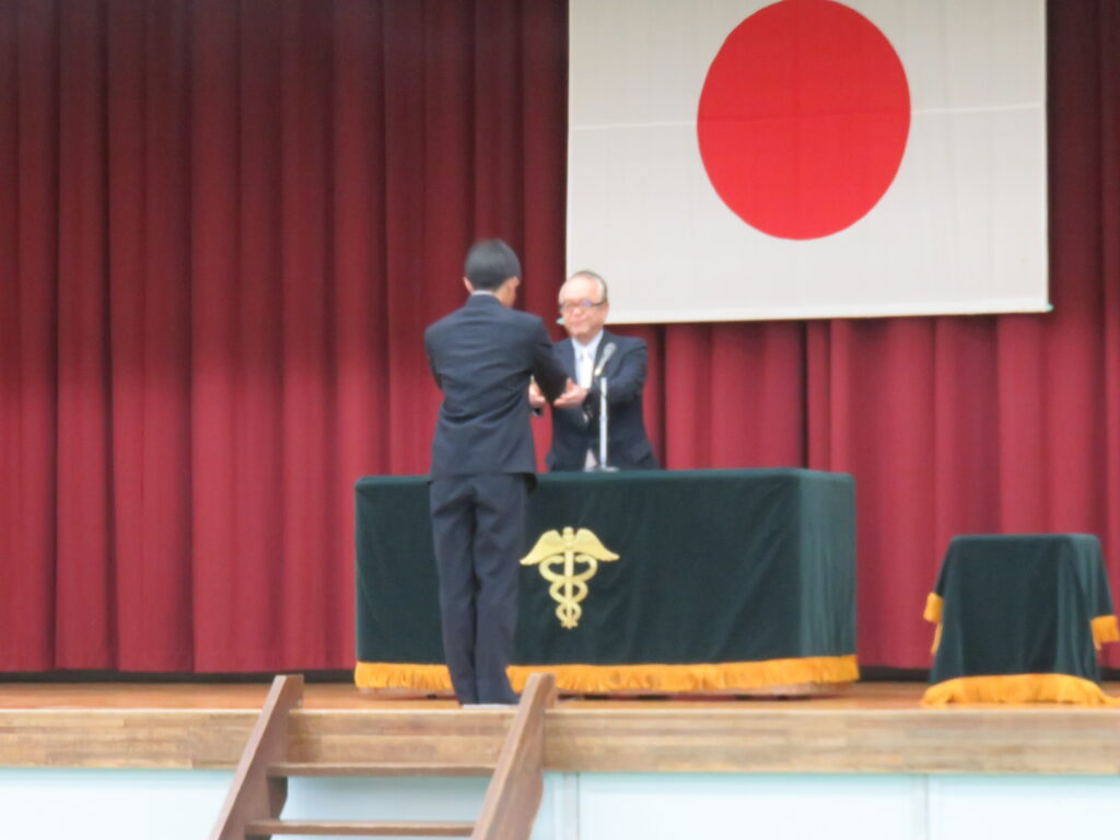 令和8年2月27日(金)、関谷理事長・林業務執行理事・倉本業務執行理事にご出席いただき、3年生152名の同窓会入会式が体育館で行われました。